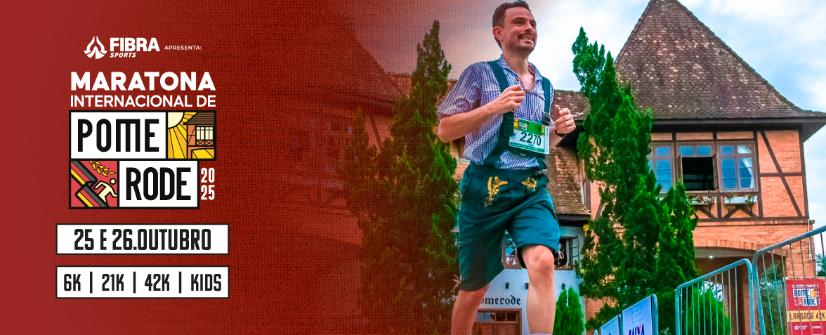 Maratona Internacional de Pomerode une corrida, superação, festa e diversão. A prova acontece nos dias 25 e 26 de outubro de 2025, com as distâncias de 6km, 21km e 42km, além da corrida kids.