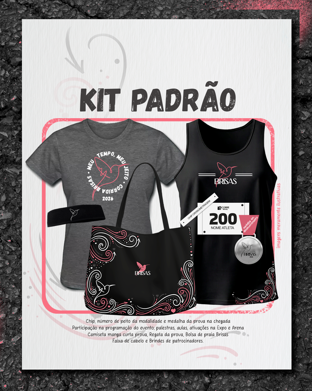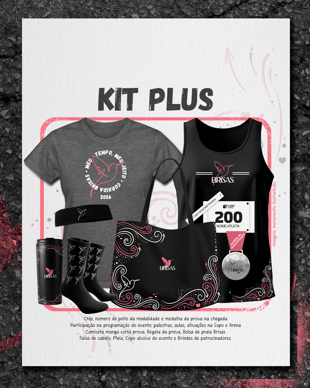 * A idade mínima é de 14 anos completos em 2026 para percurso 3km e 5km, 18 anos completos em 2026 para o percurso de 10km. Para Corrida das Brisinhas a idade mínima é de 4 anos completos em 2026.