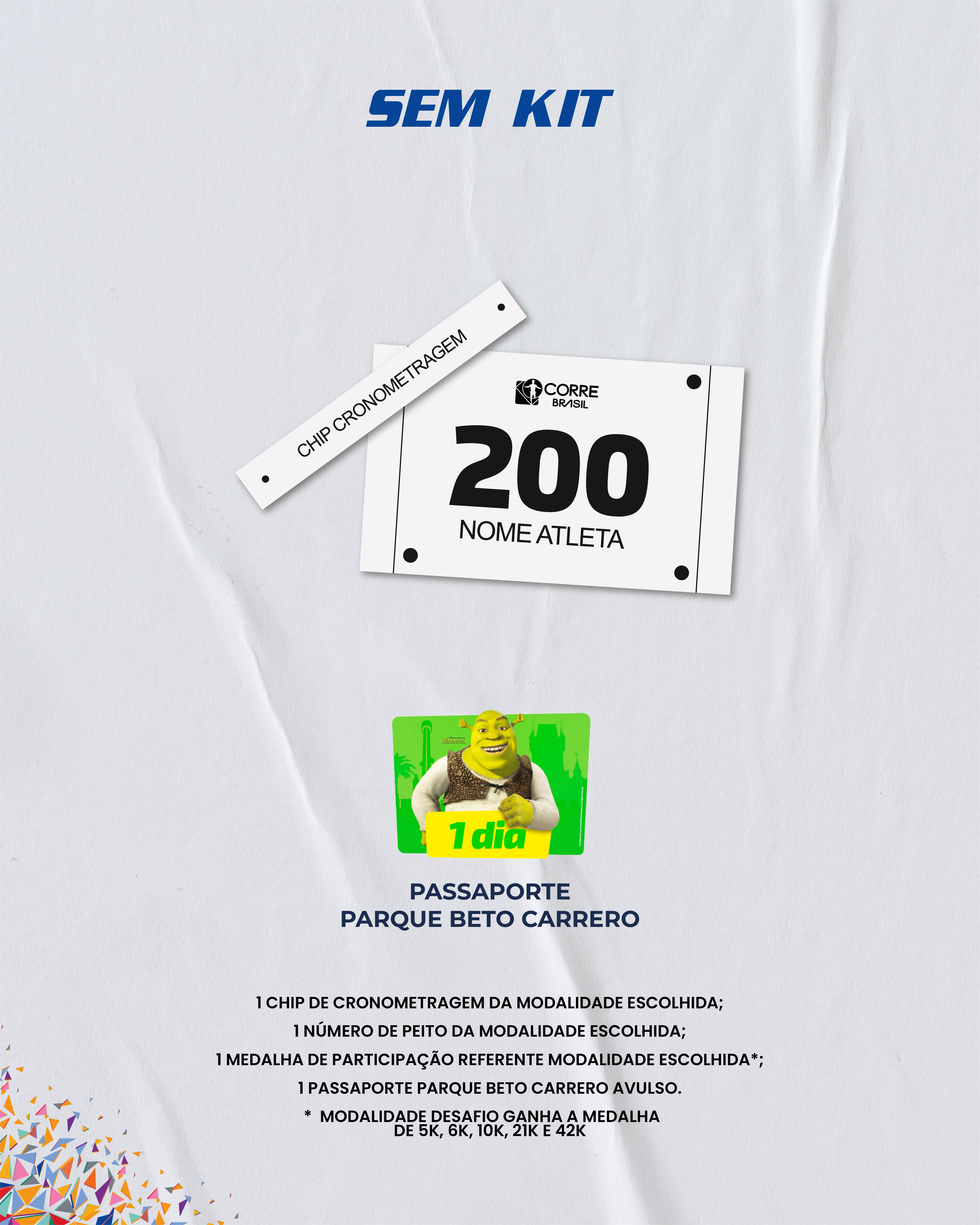 *Todas as inscrições terão passaporte (ingresso para 01 dia) de acesso ao Parque Beto Carrero inclusos na inscrição, o mesmo não é pessoal e pode ser transferido. O passaporte tem validade até 30 de novembro de 2026 e será entregue somente como parte integrante do kit adquirido pelo atleta e no horário indicado para entrega dos kits.